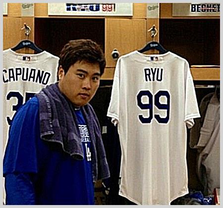 야구선수 류현진은 2012시즌이 끝난후 본인의 등번호 99번을 한화 이글스 임시결번으로 남기고 7년간의 국내 커리어를 뒤로한채 국내 최초로 포스팅 시스템을 통한 미국 진출을 선언하여 로스앤젤레스 다저스와 6년 총액 6173만달러라는 전례없는 계약으로 메이저 리그에 진출하였습니다.